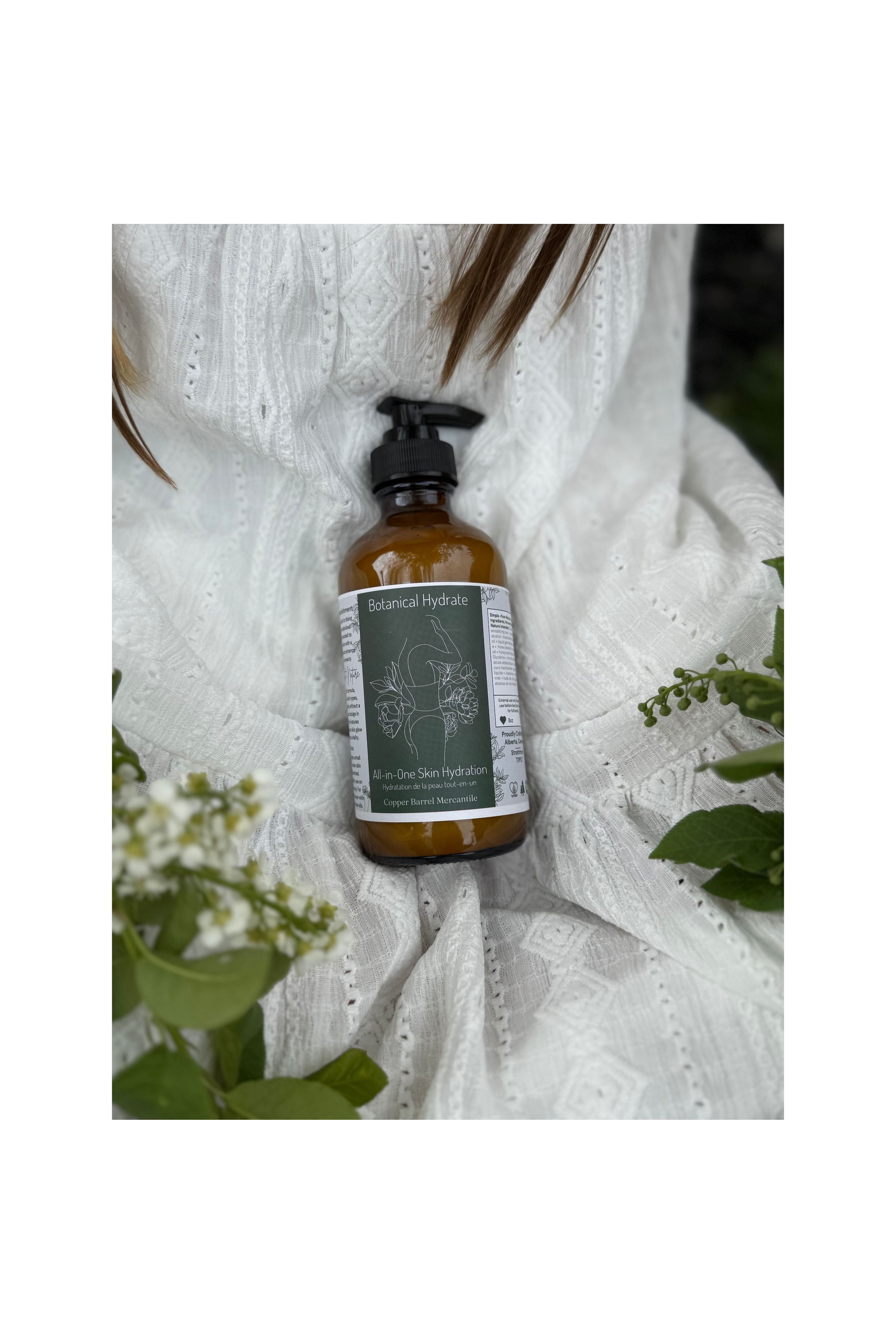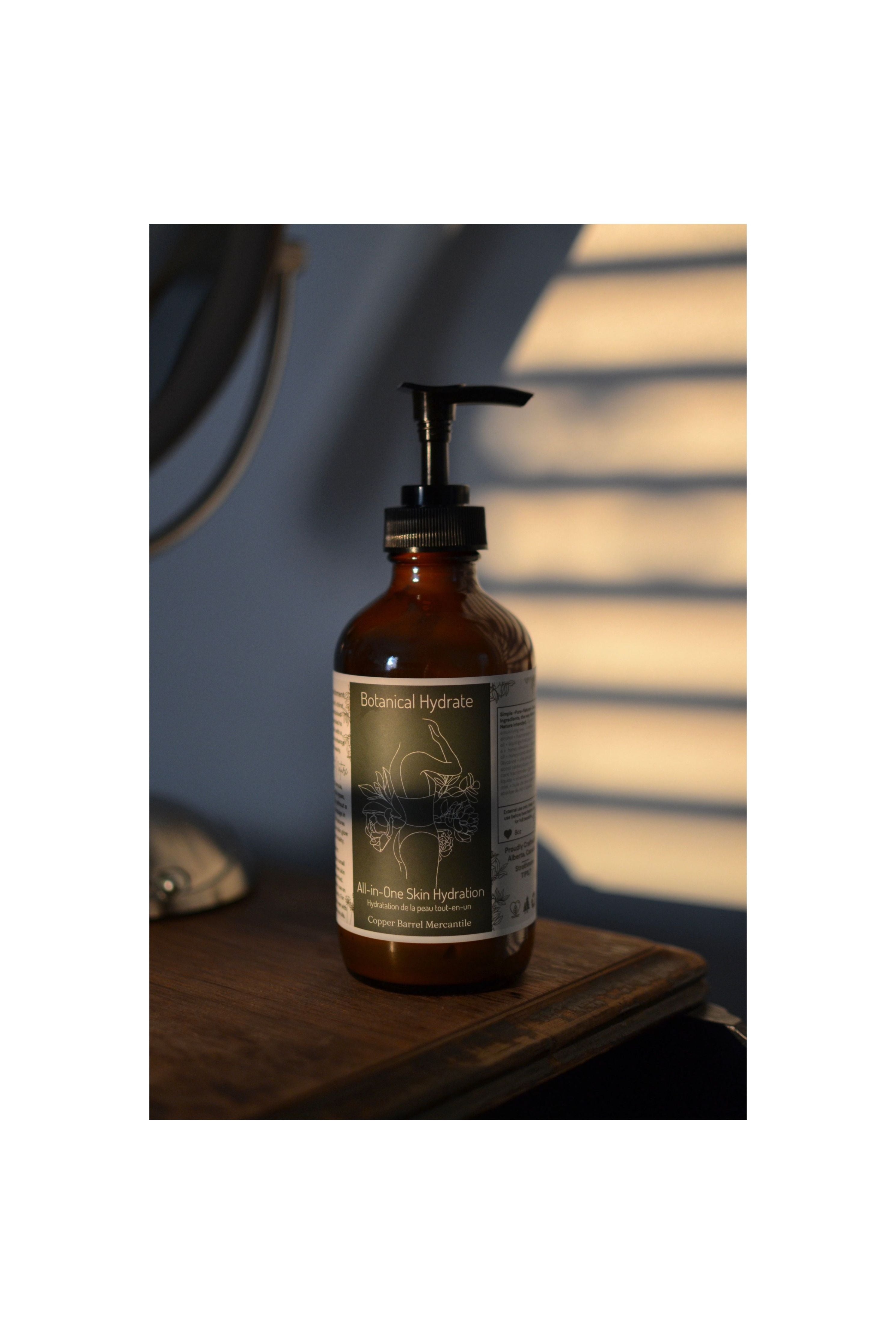 Handcrafted + wildcrafted in Alberta. Light daily hydrating lotion formulated with natural and organic oils that leave your skin feeling dewy — not greasy. A sweet floral aroma with subtle hints of earthy green notes. Sexy, timeless, and romantic. Housed in an 8oz amber glass bottle.