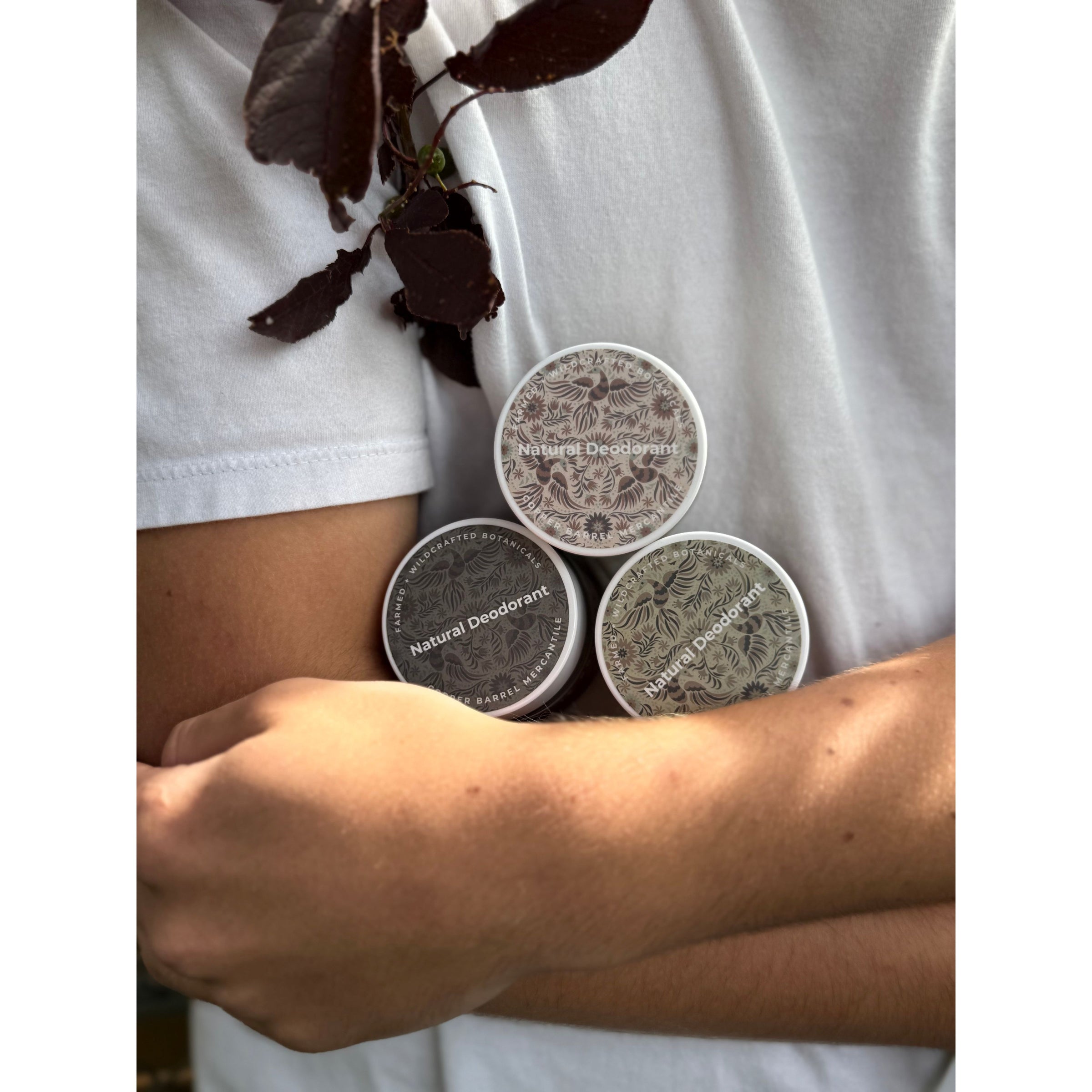 Ingredients That Care for You: Every jar is filled with pure, skin-loving ingredients-nothing extra, nothing hidden. Cocoa butter, shea butter and sweet almond oil-deeply nourishing and soft on your skin. Beeswax-Locks in moisture while letting your skin breathe. Baking soda to neutralize sweat. Arrowroot powder, clays and non-GMO cornstarch all absorb sweat naturally. Magnesium and zinc oxide are gentle, order-fighting minerals. Coconut oil is a natural powerhouse for freshness and a micro dose of essential oils for a delicate, nature-inspired scent. (lavender, wild sage, bergamot, sweet orange & geranium) Every ingredient is organic, every formula is made for balance-so your body stays fresh, naturally - the way Mother Earth intended.