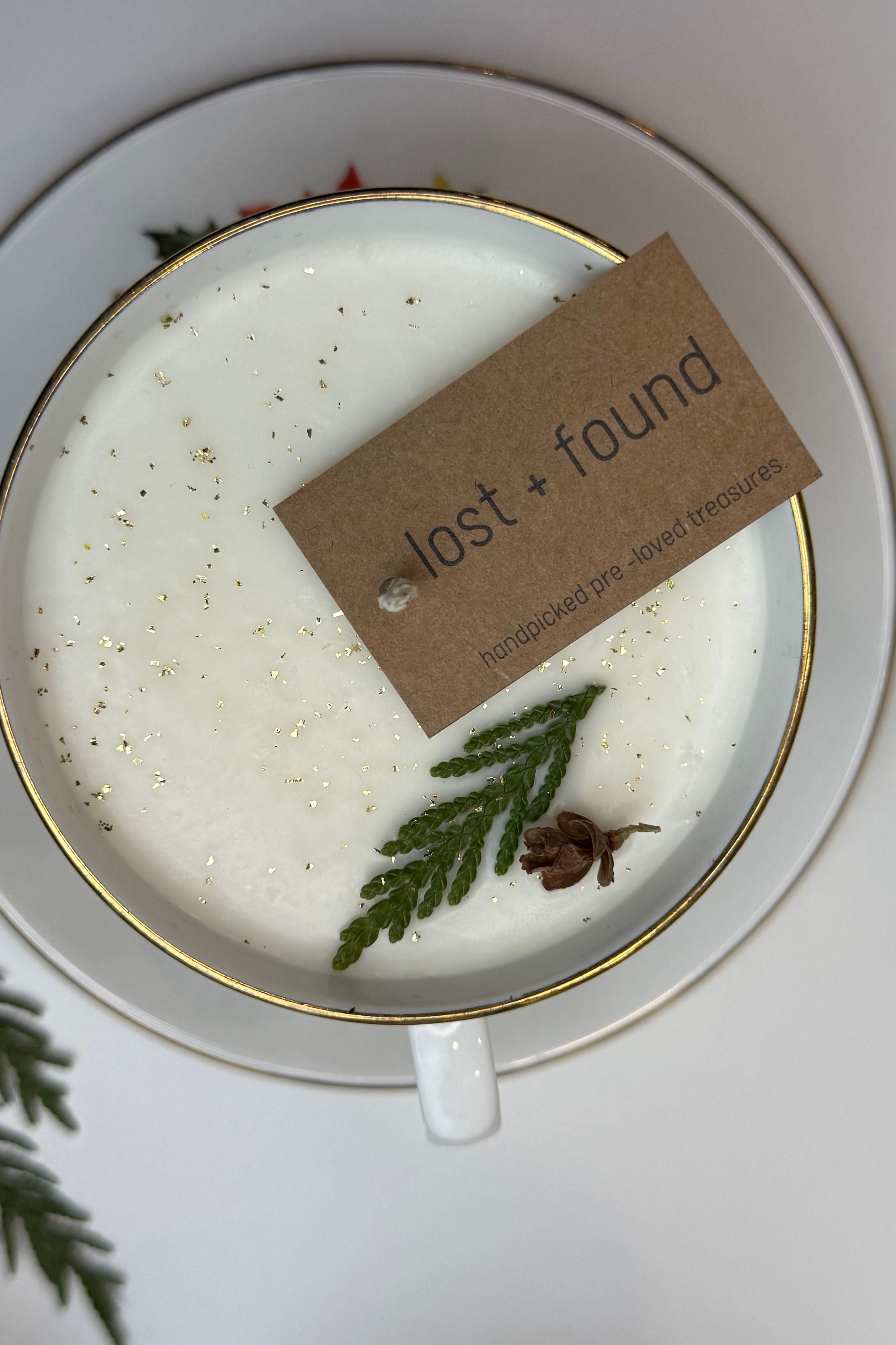 Perfect for gifting. Pre-loved teacup, hand poured with new intention for the year ahead. (soy wax + pure essential oils. Christmas blend of cedar, pine, fir and spruce) Set of 6. sold individually.