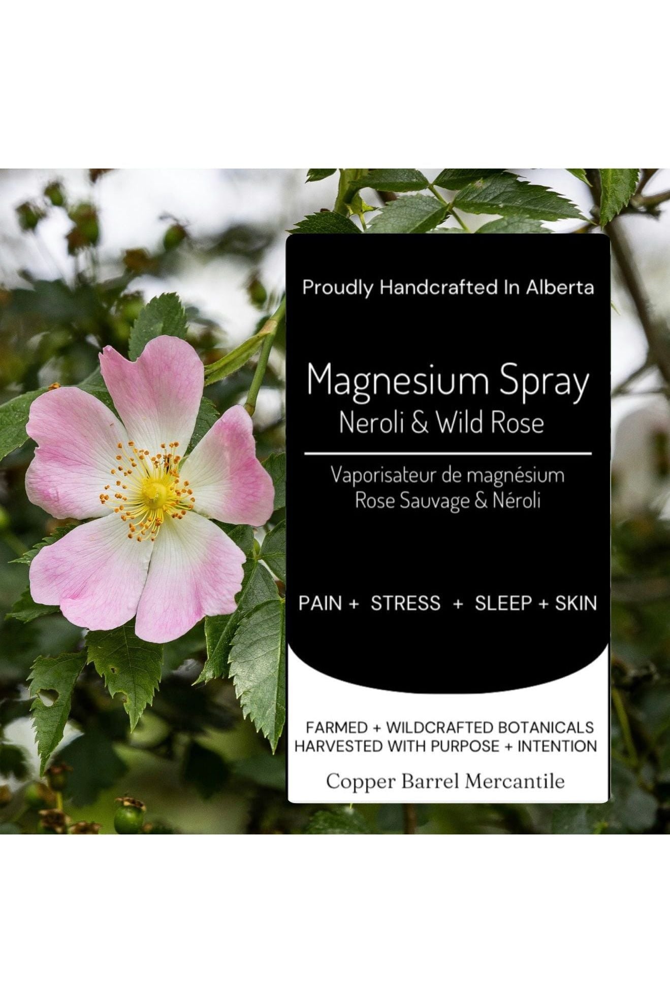 Not your average magnesium- blended with therapeutic hydrosols for added botanical benefits.This is prairie-born, purpose-crafted wellness in a bottle. Neroli, cultivated in the fields of France, meets wildcrafted Alberta rose in a gentle, skin-loving blend that brings the essence of nature straight to your wellness ritual. Each spray offers calm, comfort, and a touch of botanical magic. Housed in a 100ml frosted glass bottle.