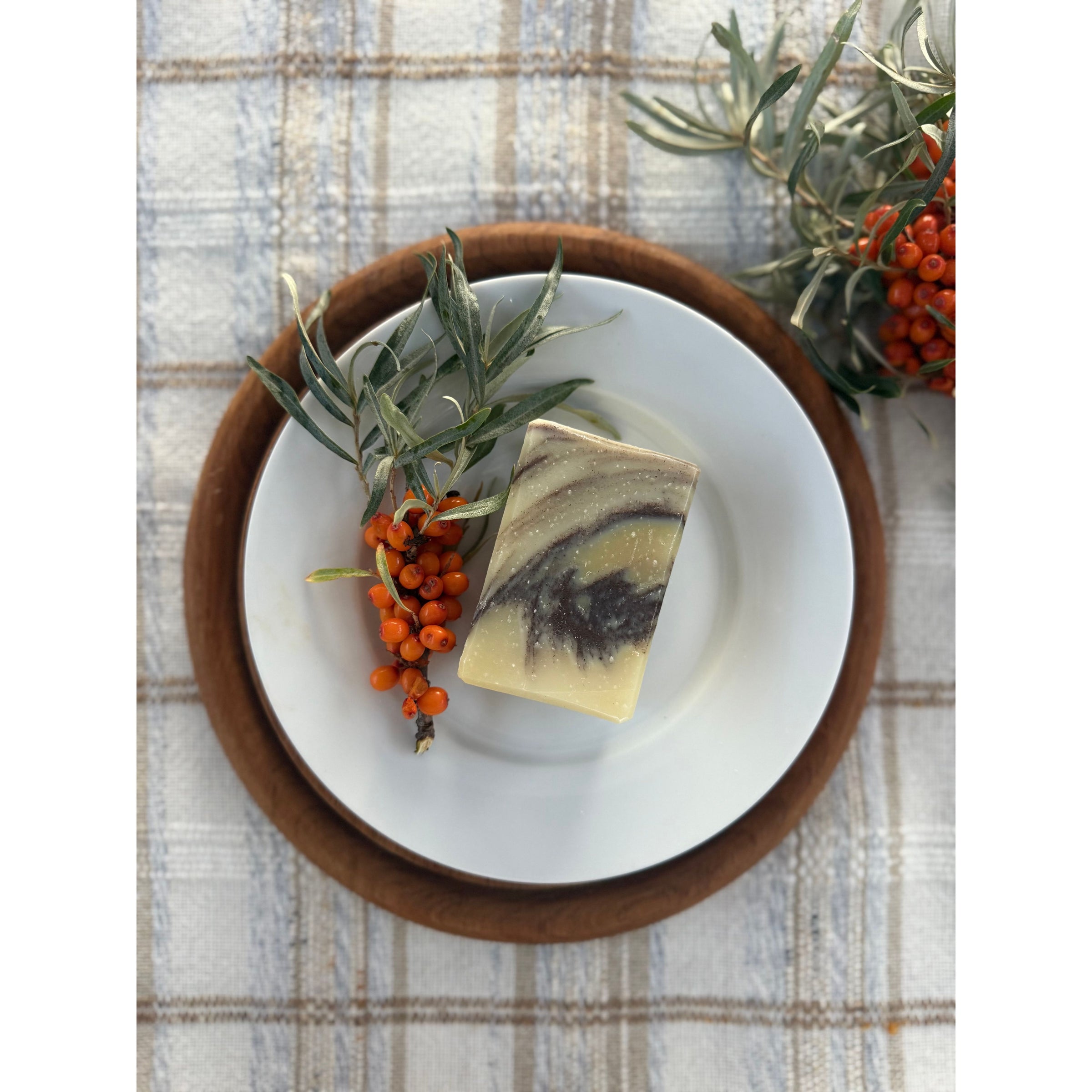 A fresh, invigorating bar that captures the brightness of lemon and the clarity of tea tree. This block is enriched with golden sea buckthorn oil — a botanical powerhouse naturally rich in vitamins A, C, and E, flavonoids, and essential fatty acids. It’s a nutrient-dense boost for skin, wrapped in a citrus-herbal aroma that feels clean and alive.