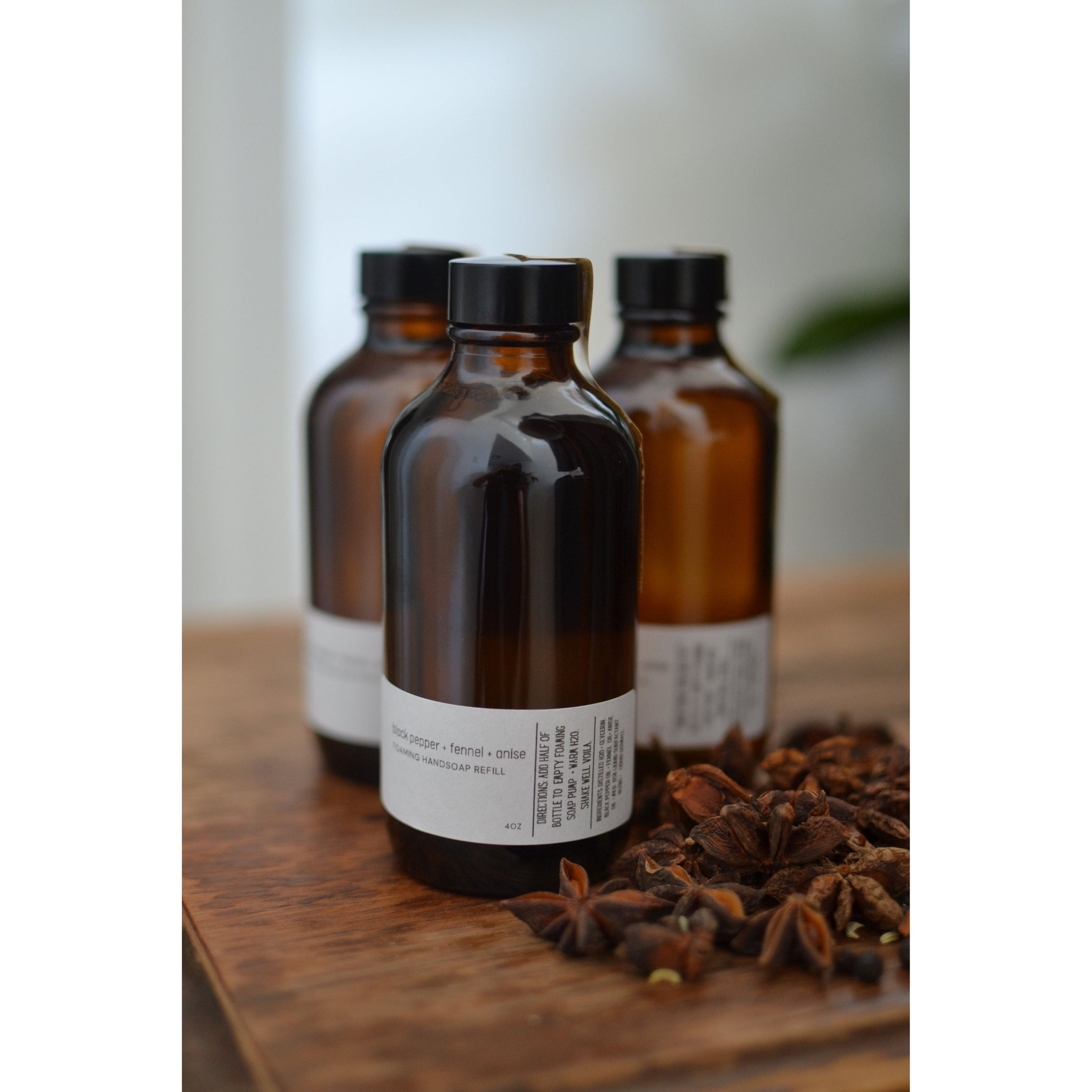 4oz (concentrated) Refill: Simply stated in a simple (not so fancy) amber glass bottle. Filled with natural wildcrafted goodness. This refill has been designed to work alongside the 360ml Glass bottle. If you are using the 250ml bottles use only half recommended mixture. It must be a FOAMING soap pump.