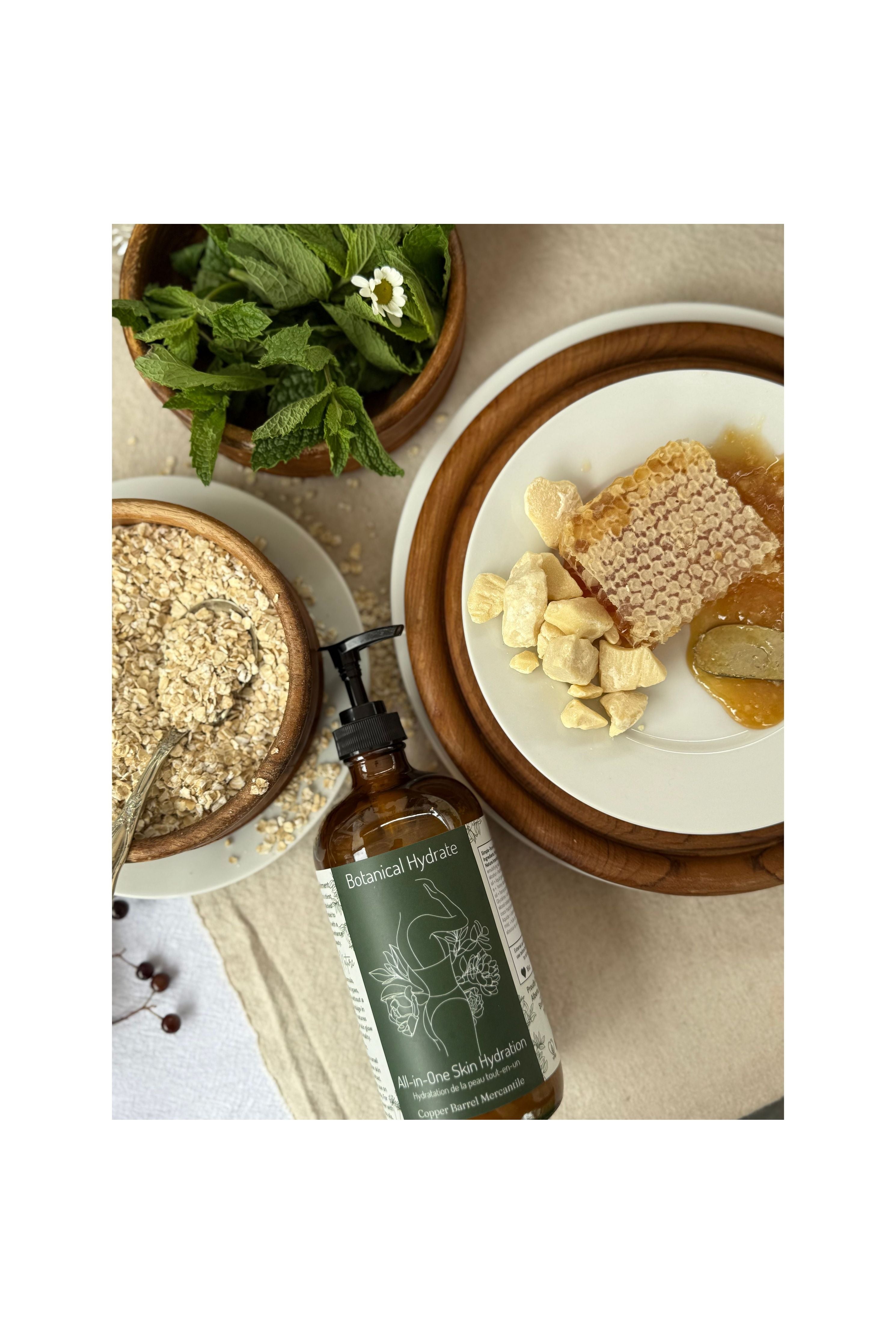 Handcrafted + farmed in Canada. Light daily hydrating lotion formulated with natural and organic oils that leave your skin feeling dewy — not greasy. Housed in 8oz amber glass bottle.