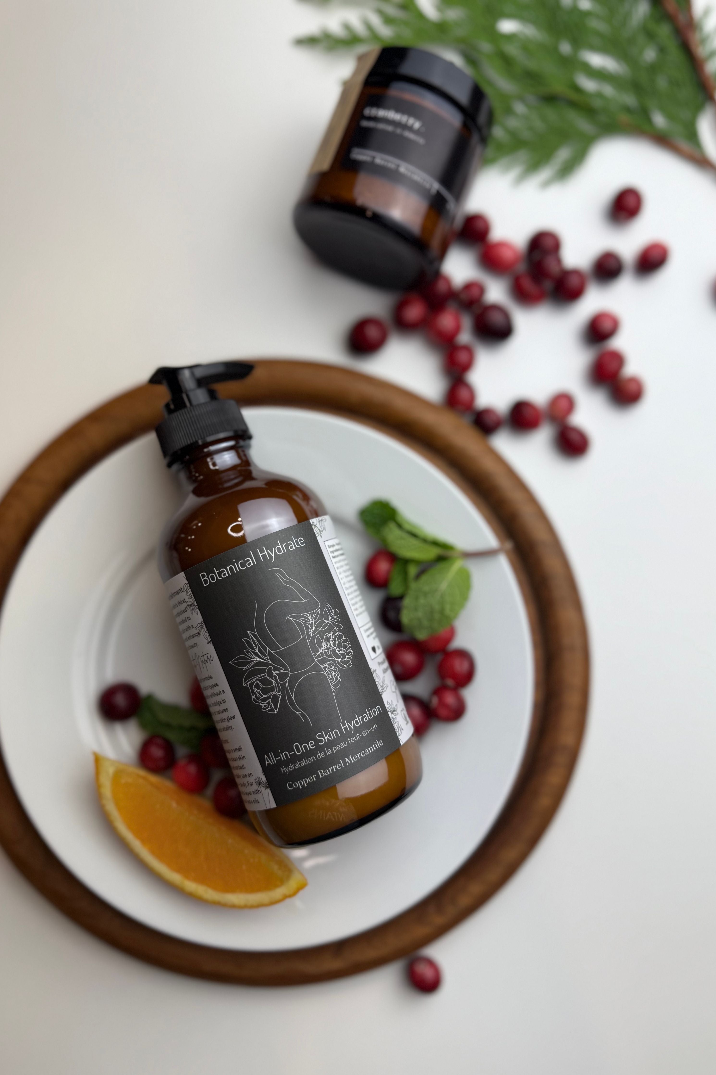 A refreshing blend of cranberry, orange, and distilled peppermint- bright, crisp, and slightly sweet. Awakening and cleansing, yet gentle on the skin. Made to refresh daily rituals and lift the spirit through the colder months. Housed in amber glass bottle.